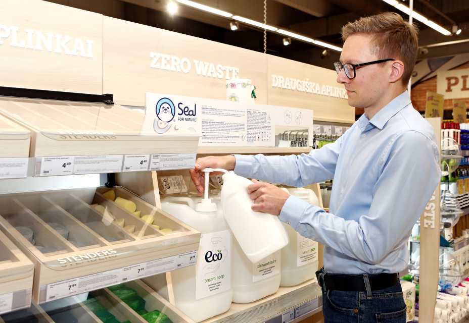 Palaikydama tvarų požiūrį ir sprendimus bei reaguodama į klientų norą gyventi ekologiškiau, „Rimi“ yra pirmoji mažmeninės prekybos įmonė Baltijos šalyse, pradėjusi prekiauti namų apyvokos ir higienos prekėmis be pakuočių. Vadinamuosius „Zero Waste“ stendus galima rasti 8 „Rimi“ parduotuvėse visose Baltijos šalyse. Prekių asortimentą sudaro šampūnas, muilas, dantų pasta ir dantų šepetėliai, dezodorantai, tualetinis popierius, indų plovikliai, higienos ir kitos priemonės. Per 2021 metus „Zero Waste“ asortimentas padėjo sutaupyti 700 kg plastiko.