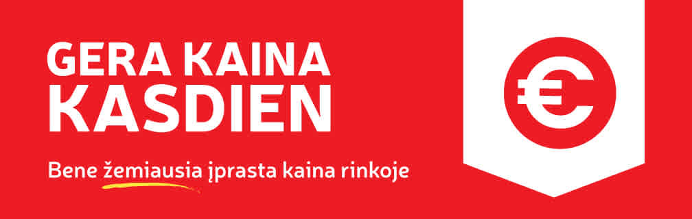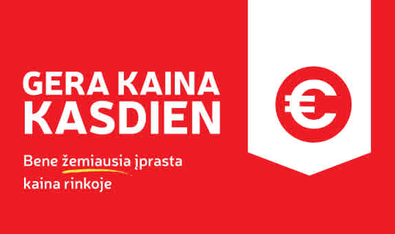 Tai – RIMI geros kainos ženklas. Jis pažymi, kad nurodyta kaina nėra speciali nuolaida ar akcija, o yra bene žemiausia įprasta kaina rinkoje. Taigi, nesvarbu, ar perkate kasdienes prekes, tokias kaip pienas, kiaušiniai, duona ar kažką ypatingo - atkreipkite dėmesį į raudoną euro ženklą šalia kainų etikečių ir sutaupykite kasdien!