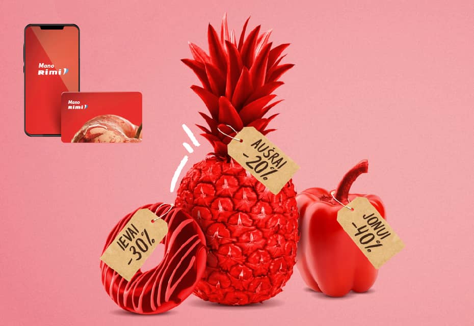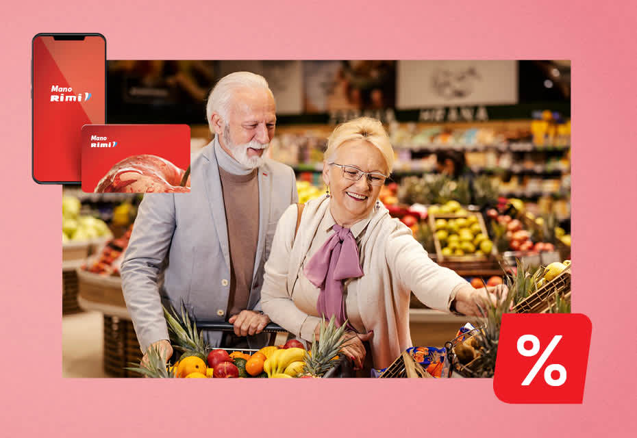 Taip pat, su „Mano Rimi“ kortele galite naudotis asmeniniais pasiūlymais, „Mano Rimi“ pinigais, o pirmadieniais senjorai gali apsipirkti 10 % pigiau.