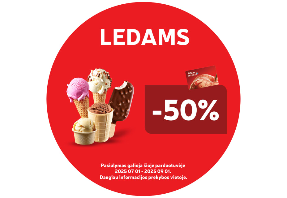 NET -50% nuolaida valgomiesiems ledams kasdien iki rugsėjo 1 dienos!