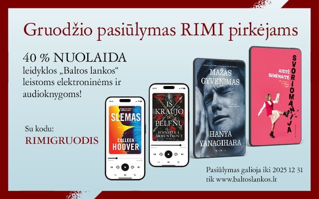 Pasinaudok nuolaidos kodą RIMIGRUODIS ir įsigyk „Baltų lankų“ leidyklos leistas elektronines ir audioknygas su 40 % nuolaida.