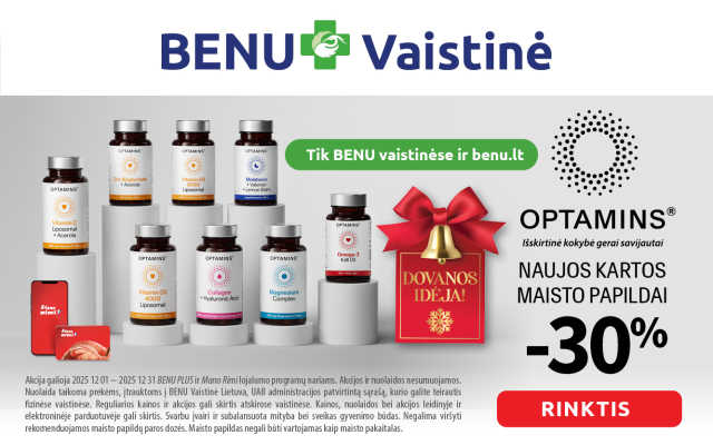 Visą gruodį „Benu“ vaistinėse maisto papildams OPTAMINS taikoma 30 % nuolaida su „Mano Rimi“ kortele!
