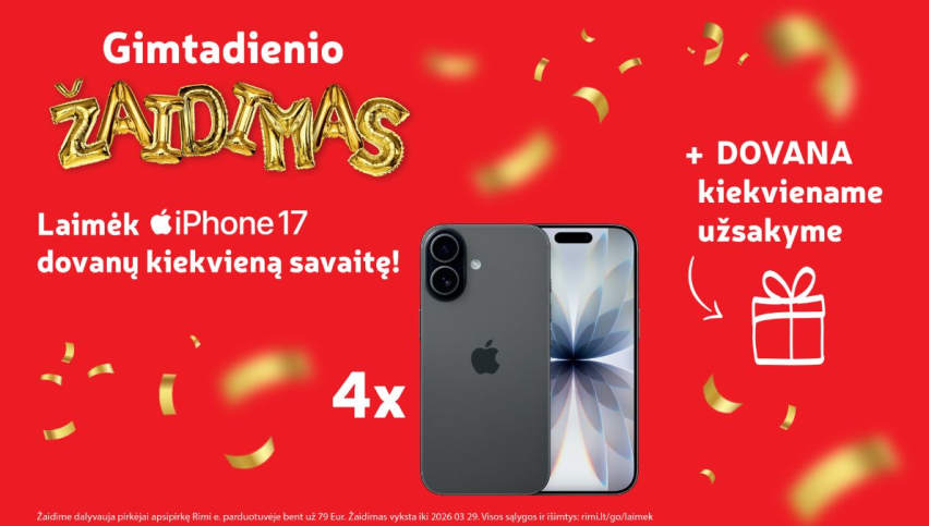 „Rimi.lt“ gimtadienio mėnuo: apsipirkus už 79 € – galimybė laimėti „iPhone 17“