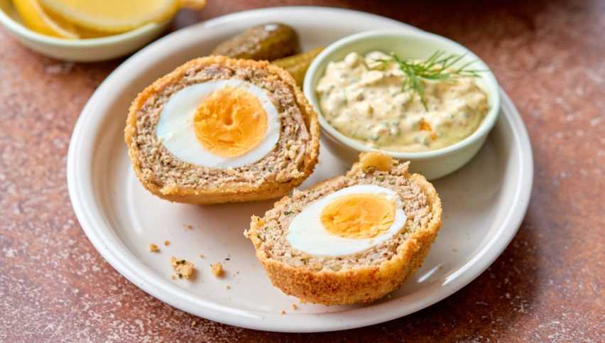Škotiški kiaušiniai su jautienos ir kiaulienos faršu